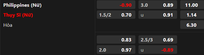 Soi kèo châu Á: Nữ Thụy Sĩ đang bị nghi ngờ trước trận đấu này. Tỷ lệ chấp của họ đã giảm từ -2 1/4 xuống -1 3/4 trong những ngày qua. Rõ ràng, đội bóng châu Âu bị nghi ngờ khi trải qua 8 trận liên tiếp không biết tới mùi chiến thắng trước giải đấu. Trong khi đó, vs tố chất tiềm ẩn, nữ Philippines xứng đáng được tin tưởng.