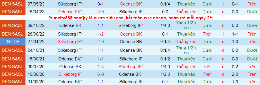 Lịch sử đối đầu giữa Odense vs Silkeborg