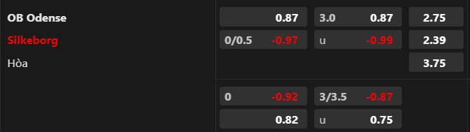 Soi kèo tài xỉu: Cột mốc tài xỉu tăng từ 2 3/4 lên 3. Niềm tin đang hướng về kịch bản nhiều bàn thắng. 16/20 trận gần đây của Odense và 3/5 trận làm khách gần nhất của Silkeborg đều có tối thiểu 3 bàn.