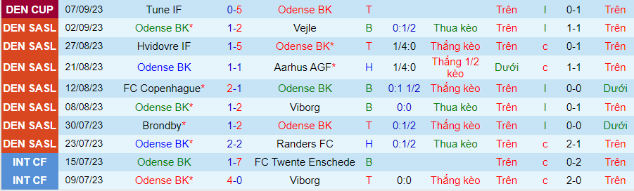 Thống kê 10 trận gần nhất của Odense