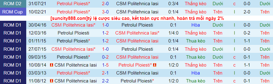 Lịch sử đối đầu giữa Politehnica Iasi vs Petrolul Ploiesti