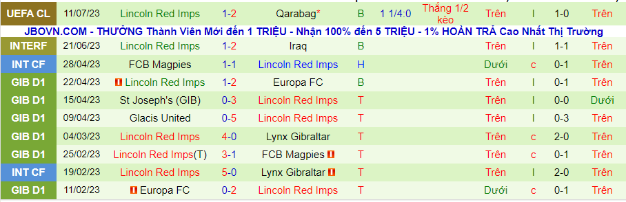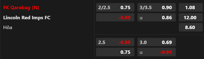 Trong khi đó, việc Lincoln Red Imps chỉ thua vs cách biệt 1 bàn trước Qarabag ở lượt đi đã là thành công lớn. Bằng chứng là đại diện của Gibraltar đã thắng kèo. Điều đó cho thấy khả năng ngược dòng của Lincoln Red Imps gần như bằng không.