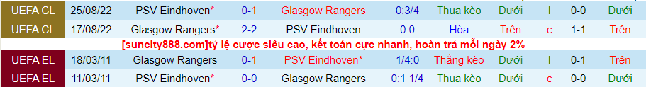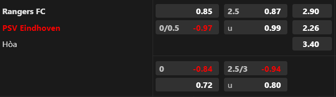 Tỷ lệ kèo Rangers vs PSV