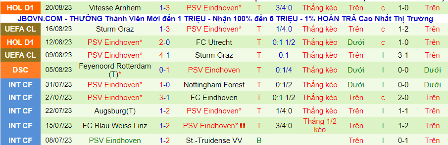 Trong khi đó, PSV đang có sự khởi đầu thành công ở mùa giải này khi toàn thắng trong 5 trận đấu. Trong đó, họ đã hủy diệt Sturm Graz vs tỷ số 7-2 ở vòng loại thứ 3 cúp C1 châu Âu. Nếu tính dài hơn, PSV là kênh đầu tư ưa thích của người chơi.