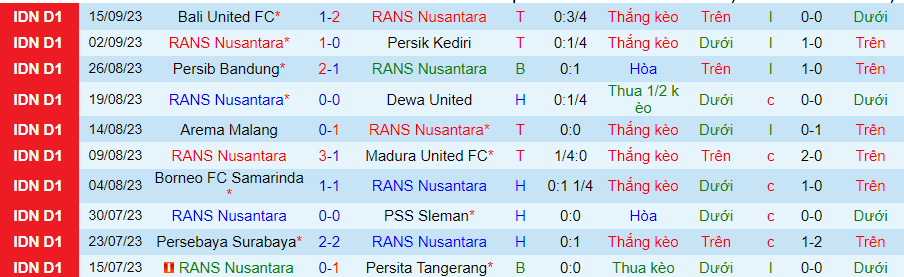 Cùng vs sự vươn lên, RANS cũng là kênh đầu tư tốt trong thời gian qua. Đội bóng này đã thắng kèo trong 12/16 trận đấu gần đây. Trên sân nhà, RANS cũng thắng kèo trong 5/7 trận đấu gần đây.