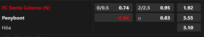Soi kèo châu Á: Niềm tin đang hướng về cửa Santa Coloma trước trận đấu này. Điểm ăn ở cửa đội bóng Andorra chấp -1/4 đã giảm sâu từ 0.90 xuống 0.74. Ở trận lượt đi, Santa Coloma có phần lấn lướt trên sân của Penybont. Họ hoàn toàn có thể tận dụng việc Penybont quá thiếu kinh nghiệm khi lần đầu bước ra biển lớn, để giành chiến thắng trên sân trung lập.