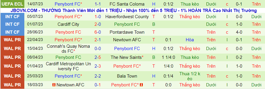 Penybont đã không tận dụng được lợi thế sân nhà khi đối đầu vs Santa Coloma. Tuy nhiên, đội bóng này cũng không ngại phải làm khách. Theo thống kê, Penybont đã trải qua 7 trận bất bại liên tiếp khi làm khách.