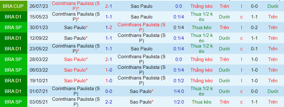 Lịch sử đối đầu giữa Sao Paulo vs Corinthians