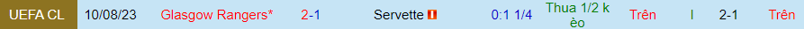 Soi kèo châu Á: Nhà cái để Rangers chấp -1/4 nhưng niềm tin hướng về cửa Servette. Điểm ăn ở cửa chủ nhà đã giảm từ -0.98 xuống 0.94. Trên sân nhà, Servette thi đấu khá khó chịu khi chỉ thua 1/20 trận gần đây. Trong khi đó, Rangers đã thua 3/5 trận gần nhất trên sân khách.
