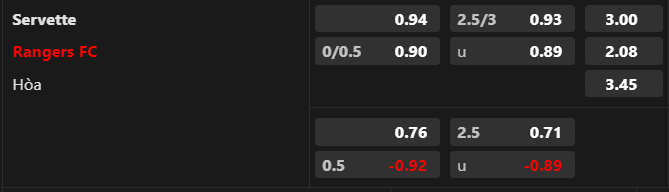 Soi kèo tài xỉu: Cột mốc tài xỉu tăng từ 2 1/2 lên 2 3/4 là dấu hiệu cho thấy niềm tin hướng về khả năng trận đấu có nhiều bàn thắng. Chẳng nói đâu xa, trận lượt đi đã có 3 bàn được ghi. Bên cạnh đó, 5/8 trận gần đây của Servette và 10/11 trận gần đây của Rangers nổ Tài.