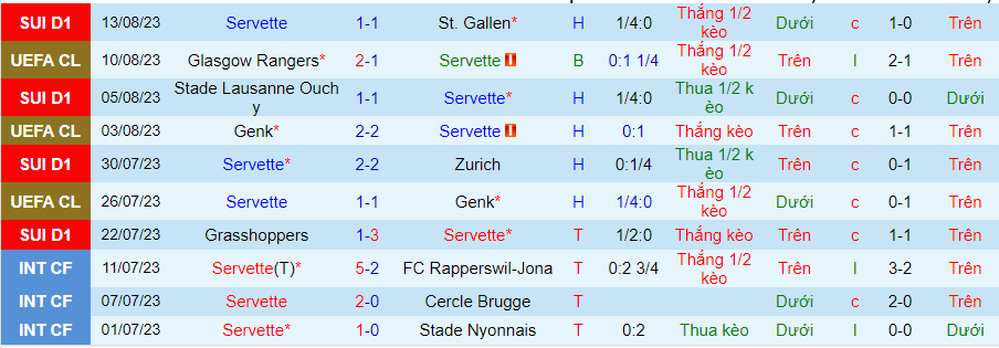 Tính ra, Servette không giành chiến thắng 6 trận liên tiếp. Do đó, cơ hội ngược dòng của Servette bị nghi ngờ. Tuy nhiên, đổi lại, CLB này đã thắng kèo 6/8 trận gần đây. Một phần chủ yếu nhờ vào việc Servette bị xếp vào vai trò cửa dưới.