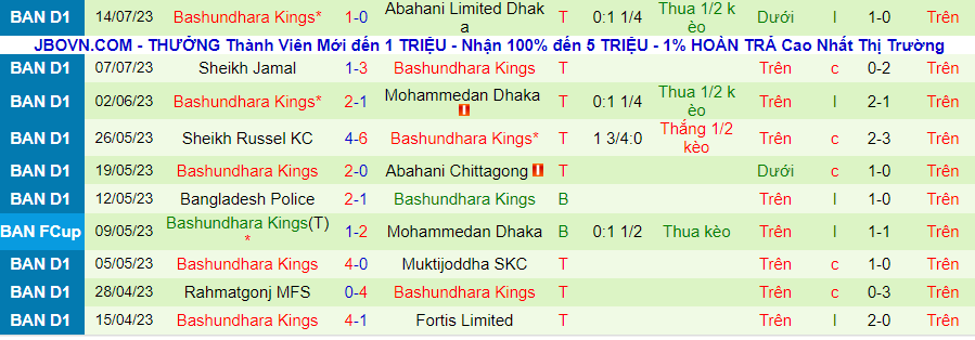 Thống kê 10 trận gần đây của Bashundhara Kings