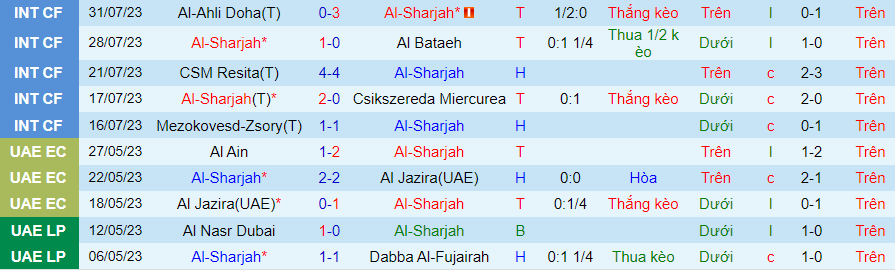 Sharjah chưa bắt đầu mùa giải mới nhưng trong thời gian qua họ đã có phong độ khá tốt trong các trận giao hữu khi thắng 3/4 trận đấu gần nhất. Nếu tính xa hơn, Sharjah bất bịa trong 8 trận đấu liên tiếp.