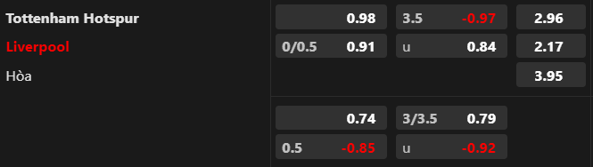 Tỷ lệ kèo Tottenham vs Liverpool