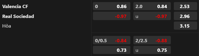 Soi kèo châu Á: Ở trận đấu này, nhà cái để tỷ lệ 0:0. vs tỷ lệ này, người chơi có thể tin vào cửa Valencia. Họ đã không thua trong 6 trận gần nhất gặp Real Sociedad. Đội bóng xứ Basque cũng khá đuối trên sân khách khi thua kèo 9/11 trận gần đây.