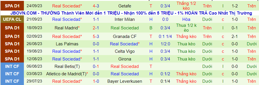 Real Sociedad đang xếp thứ 8 trên bảng xếp hạng vs 9 điểm. Dù vậy, họ vẫn chưa đáp ứng được kỳ vọng. Vào cuối tuần qua, đội bóng xứ Basque đã giành chiến thắng giải khát vs tỷ số 4-3 trước Getafe.
