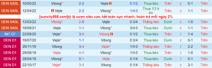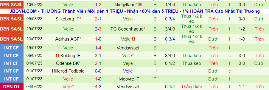 Nếu tính cả giai đoạn giao hữu, Vejle đã thua kèo trong cả 7 trận gần đây. Trên sân khách, Vejle cũng có chuỗi toàn thua trong 4 trận đấu gần nhất và thua kèo 7 trận liên tiếp. Đây là con mồi mà Viborg không thể bỏ qua.