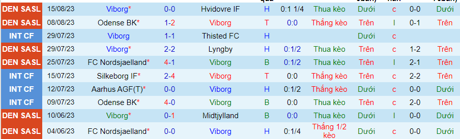 Sau trận ra quân thua Nordsjælland, Viborg đã bất bại trong 3 trận đấu gần nhất (thắng 1, hòa 2). Tuy nhiên, thành tích ấy của Viborg vẫn chưa đúng vs kỳ vọng. Đội bóng này đã thua kèo trong 4/5 trận đấu gần đây.