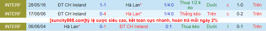 Lịch sử đối đầu giữa CH Ireland vs Hà Lan