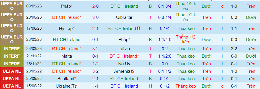 Trong thế trận ấy, CH Ireland sẽ không có nhiều lần hưởng phạt góc. Đơn cử như trận đấu gần đây gặp Pháp, CH Ireland đã thua cách biệt 2-6 về tỷ số phạt góc. Thống kê cho thấy, CH Ireland thua 2/3 trận gần đây về phạt góc.