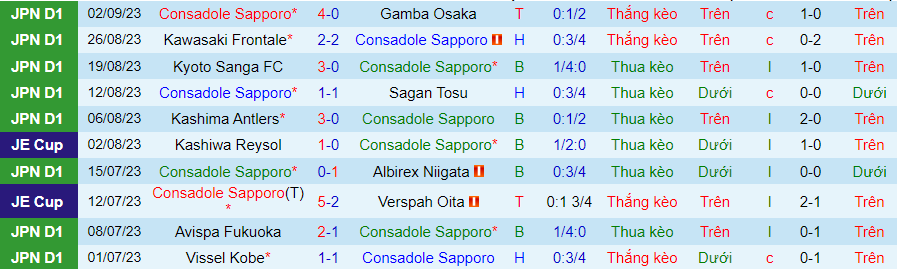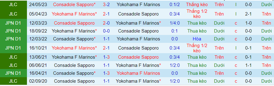 Đặc biệt, Yokohama Marinos có xu hướng hưởng khá ít phạt góc trên sân khách. Do đó, họ đã thua kèo góc trong 6/9 trận hành quân xa nhà gần đây. Điều này ảnh hưởng lớn tới Yokohama Marinos bởi Consadole đang thăng hoa ở kèo góc mỗi khi thi đấu trên sân nhà.