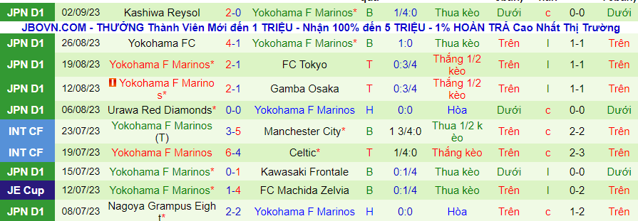 Thống kê 10 trận gần đây của Yokohama Marinos