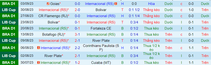 Tuy nhiên, trong thời gian gần đây, Internacional khá đuối về phạt góc. Trong 6 trận gần nhất, Internacional chỉ thắng kèo phạt góc trong 1 trận đấu. Điều này trùng vs giai đoạn vươn lên của Internacional. Rõ ràng, họ đã phát triển bóng trực diện hơn.