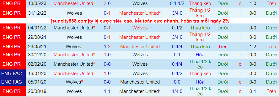 Trong các trận đấu chính thức ở cuối mùa giải trước, Quỷ đỏ cũng là kênh đầu tư tốt về phạt góc. Đội bóng này đã thắng phạt góc trong 5/6 trận đấu gần nhất. Trong khi đó, Wolves đã thua phạt góc trong 4/5 trận chính thức gần đây.
