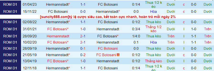 Trong 5 cuộc đối đầu gần đây, Hermannstadt không có trận nào nhận ít thẻ hơn so vs Botosani. Thế nhưng, đó là khi Botosani vẫn còn có vị thế nhất định ở giải VĐQG Romania. Còn ở mùa giải này, họ không còn giữ được phong độ.