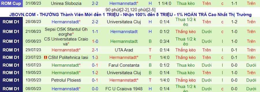 Trong khi đó, Hermannstadt lại thi đấu hiền hòa hơn rất nhiều. Trong 4 trận đấu vừa qua, Hermannstadt chỉ nhận 7 thẻ vàng. Họ cũng chỉ có 1 trận nhận nhiều thẻ vàng hơn đối thủ. Nói vậy để thấy, cục diện tài xỉu thẻ phạt đã xoay vần. Giờ đây, Botosani lại là sự lựa chọn đáng tin ở kèo thẻ.
