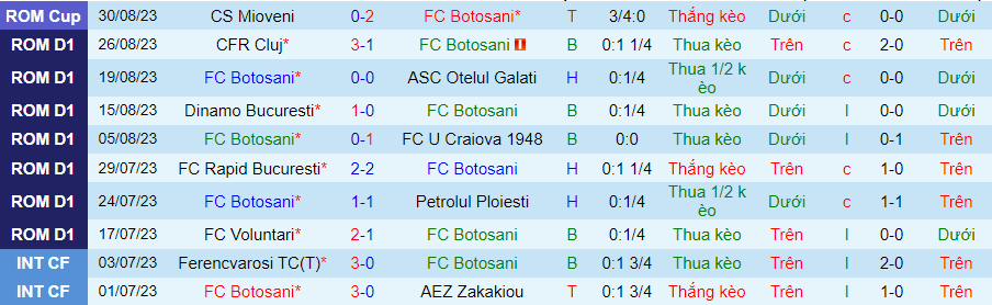 Thống kê 10 trận gần nhất của Botosani