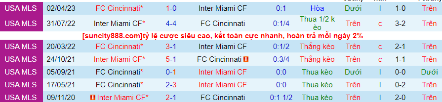 Trong những năm qua, Inter Miami chưa bao giờ phải là CLB mạnh ở giải Nhà nghề Mỹ nhưng lối chơi của họ khá hiền hòa. Bằng chứng là trong những cuộc đối đầu gần đây vs Cincinnati, Inter Miami đều thua kèo thẻ phạt.