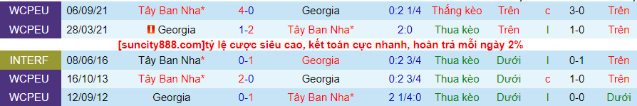Lịch sử đối đầu giữa Georgia vs Tây Ban Nha