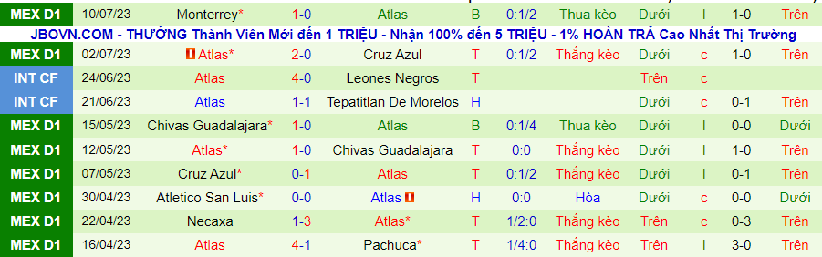 Trong khi đó, Atlas không hẳn quá hiền hòa khi có 10 thẻ vàng và 1 thẻ đỏ. Tuy nhiên, số lượng thẻ phạt của Atlas vẫn có thấp hơn khá nhiều so vs Santos Laguna. Trong đó, Atlas chỉ có 1 trận nhận nhiều thẻ hơn so vs đối thủ.
