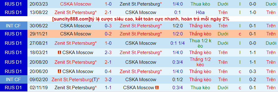 Lịch sử đối đầu giữa Zenit vs CSKA Moscow