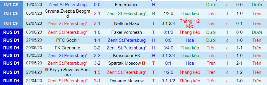 CSKA Moscow luôn có xu hướng nhận nhiều thẻ vàng trong các trận đấu căng thẳng. Đơn cử như trận chung kết cúp quốc gia Nga mùa giải vừa qua, đội bóng này đã nhận tới 5 thẻ vàng (so vs 2 thẻ của Krasnodar). Do đó, việc lựa chọn Zenit ở trận đấu này khá an toàn.